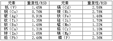 儀器自動點火后按照儀器工作條件設置好參數后,稀釋劑直接通過霧化器吸入霧室,進入等離子體,待儀器穩定后依次測量空白溶液、標準溶液及已稀釋處理的樣品溶液,儀器根據工作曲線可直接得出最終樣品中各元素的含量。