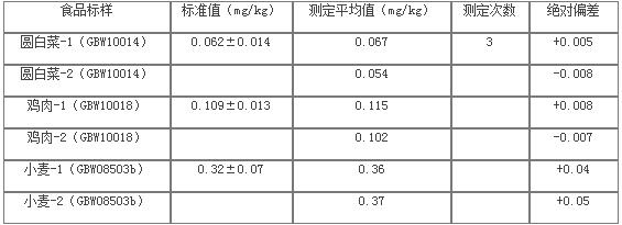 采用濕式消解對食品樣品進行處理,原子熒光光譜儀對樣品溶液進行測試,測試結果準確可靠,滿足疾控行業測試要求。