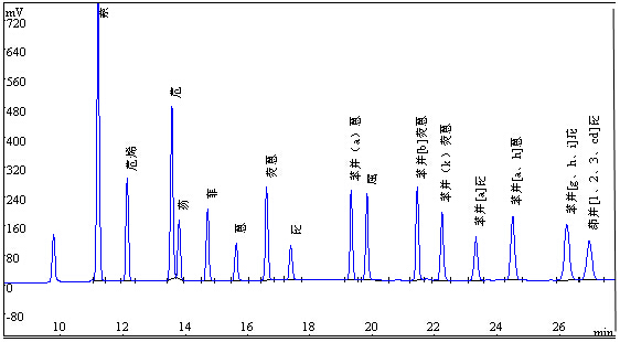 圖1.16種多環芳烴標準溶液色譜圖