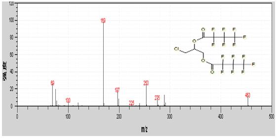 本實驗采用氣相色譜質譜聯用法(GC-MS),在SIM掃描模式下對奶粉中的氯丙醇進行定性定量測試,方法穩定可靠,線性范圍好,靈敏度高,受雜質峰干擾小,完全符合測試要求。